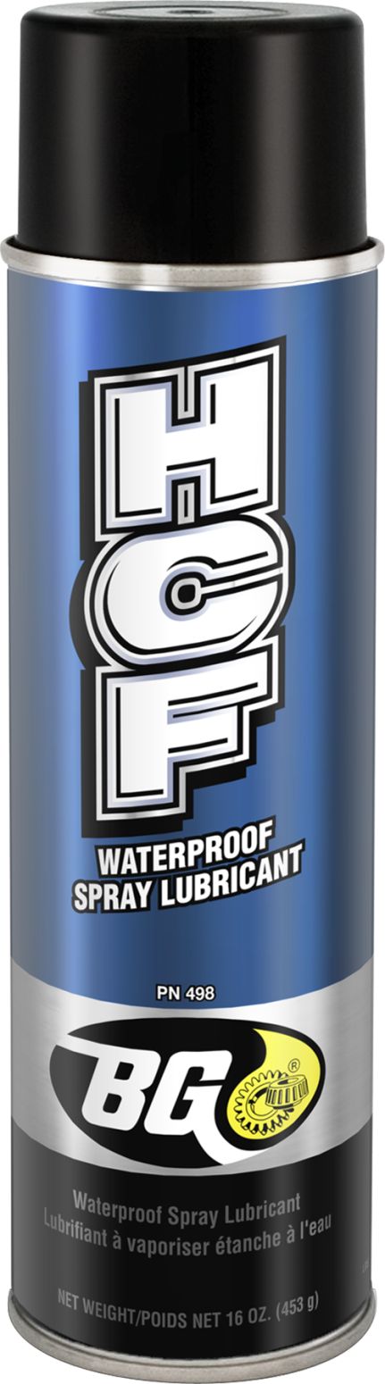BG HCF Waterproof Spray Lubricant is een smeermiddel, dat oppervlaktes smeert, die worden blootgesteld aan agressieve chemicaliën, onder water en bij zout water omstandigheden. HCF staat voor Heat Corrosion Friction; dit smeermiddel is bestand tegen temperaturen tot 288°C. BG HCF is zeer effectief tegen roest en corrosie.